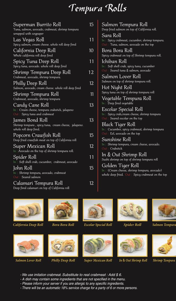 california roll or spicy tuna roll 8pcsalmon avocado roll 6pctuna avocado roll 6pc